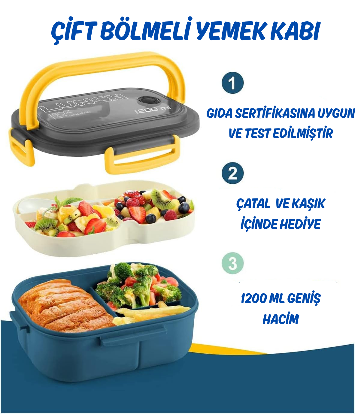 1 Adet ÇİFT BÖLMELİ YEMEK KABI -