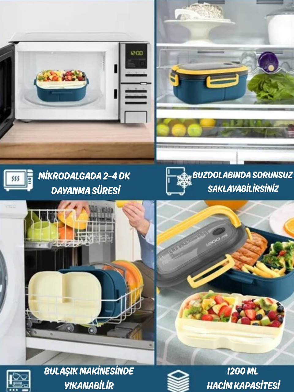 3 Adet ÇİFT BÖLMELİ YEMEK KABI -